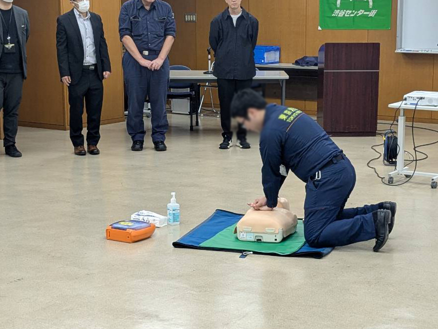 10月28日 渋谷消防署ご協力のもと、店舗を対象とした防火防災研修会が、今年も渋谷消防署内にて行なわれました。渋谷センター商店街振興組合と宇田川町会が主催し、渋谷消防署と連携して、防火、防災に対しての対策や対応に関する御指導を受けました。今回は『商業施設における火災予防』と題して、講習・指導いただきました。