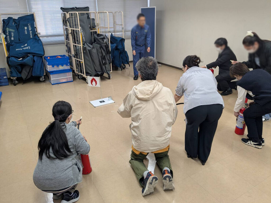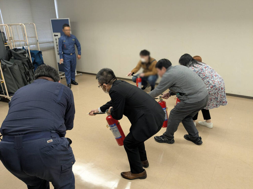 また自衛消防訓練として『消化器』及び『AED』についての取り扱いについて実践指導いただきました。今年で16回目となる研修会に、組合員50名以上が参加し、防火・防災や救急時に対しての対応の重要性を学びました。